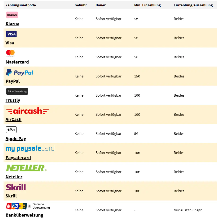 Je nach Methode gelten bestimmte Limits. Casino StarGames erhebt keine internen Gebühren für Auszahlungen.